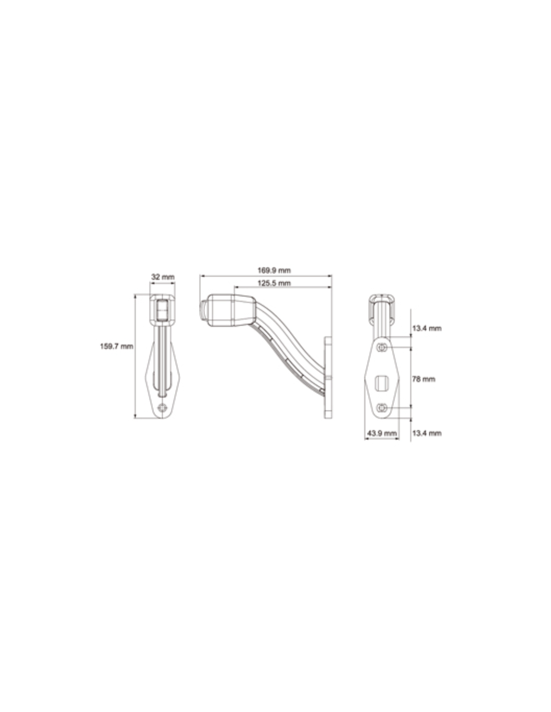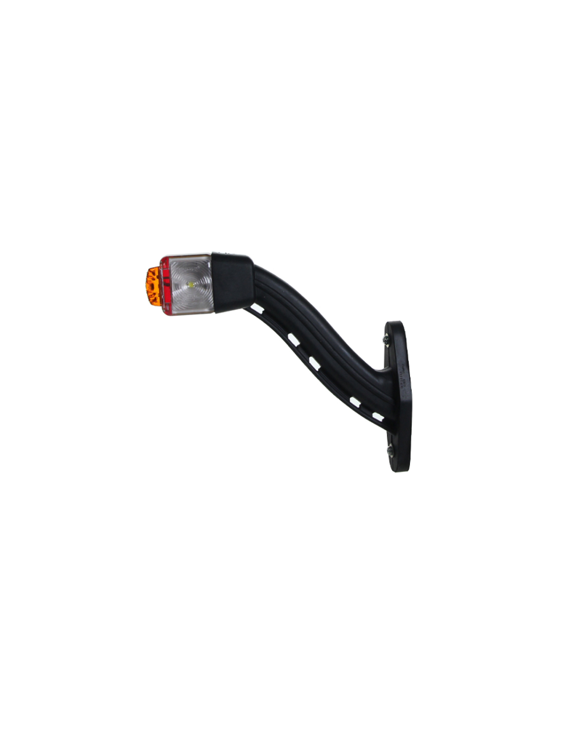 LED End Outline Marker Lamp LUCIDITY 12/24V 3-in-1 long model, curved version, ideal for heavy and light trailers - Suitable for both left and right sides - 500mm cable + PRS for connection - Very robust EPDM rubber that prevents collision damage - Long-lasting SMD LEDs for zero maintenance, resistant to vibrations and external impacts - Water-resistant to withstand harsh conditions - Circuits protected from moisture and dust with IP67 rating - Complies with ECE and IP67 standards.