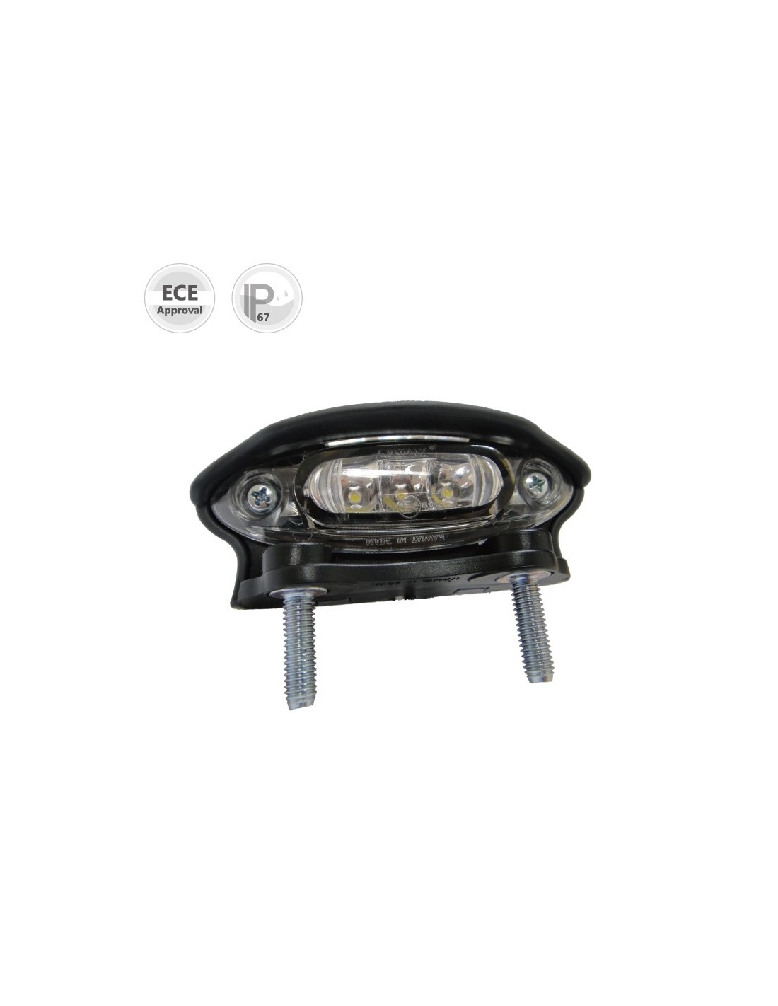 LUCIDITY LED License Plate Light 12/24V with spacer, ideal for heavy and light trailers – Adaptable to different types of vehicles – 500mm connection cable – Polycarbonate lens – Vibration and impact-resistant SMD LEDs – Stud mounting – Complies with ECE, IP67, and ECE R10 standards