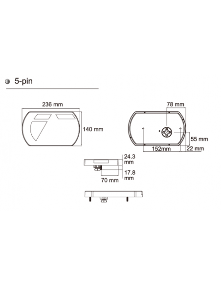 LED COMBINATION REAR LAMP 12V 5 PIN NO LICENSE