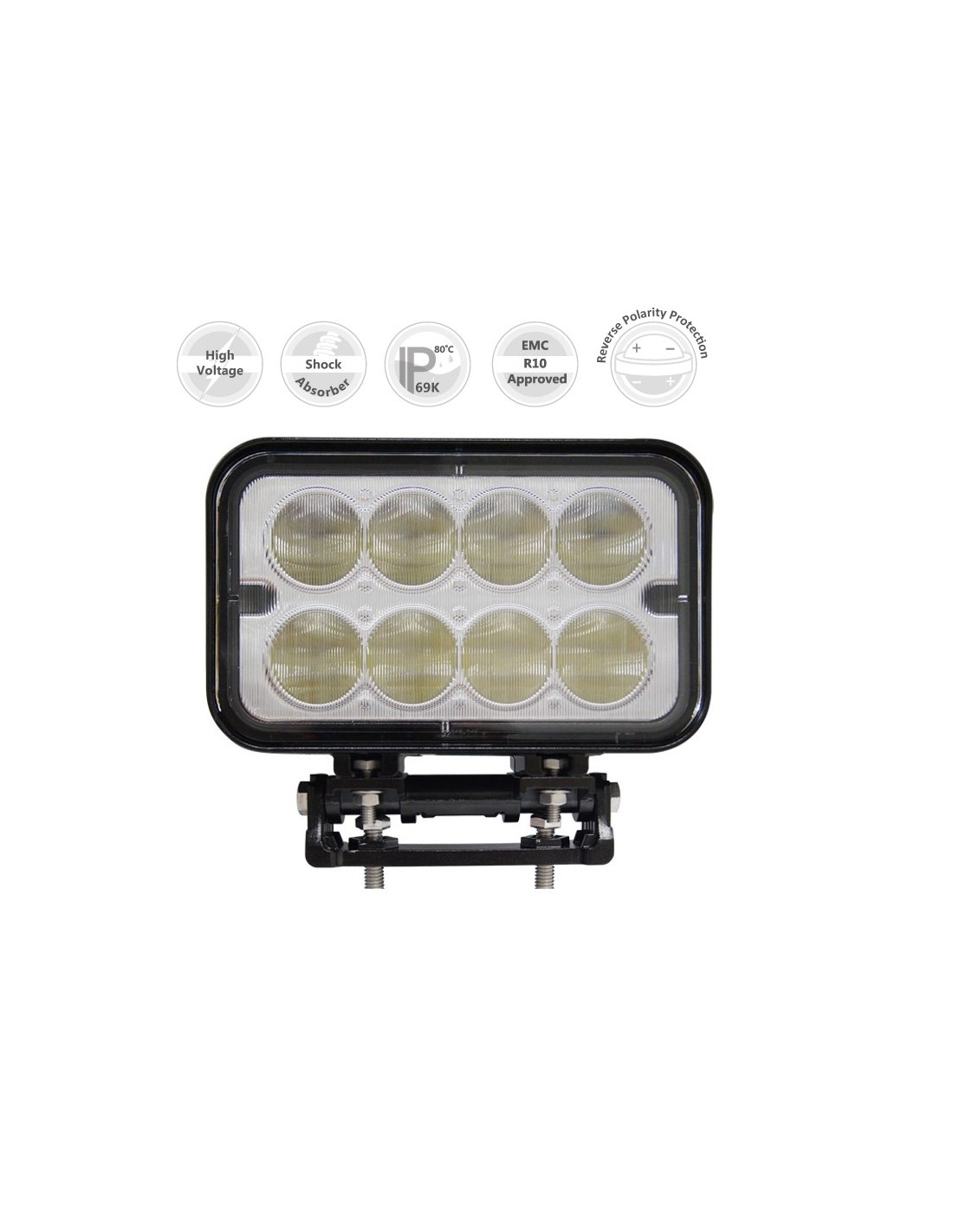 LUCIDITY Flood beam LED work lamp 9/32V rectangular shape perfect for trailer & construction - 6100 raw lumen - Connection 570mm cable - Equipped with powerful 10W LED - Wide flood work lamp with great luminosity - Meets the expectations of the most requiring working environment - Virtually unbreakable PC lens with aluminum housing design offers increased reliability and service life - Shock-absorber design to withstand constant vibrations (Optional) - Water tight configuration to withstand severe applications - Reverse polarity protection - Feature IP69K, ECE R10