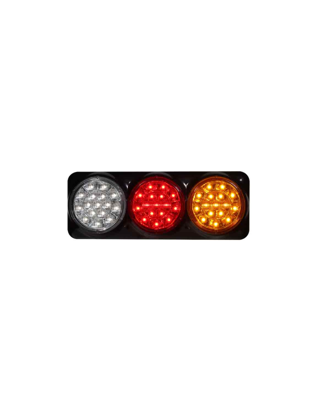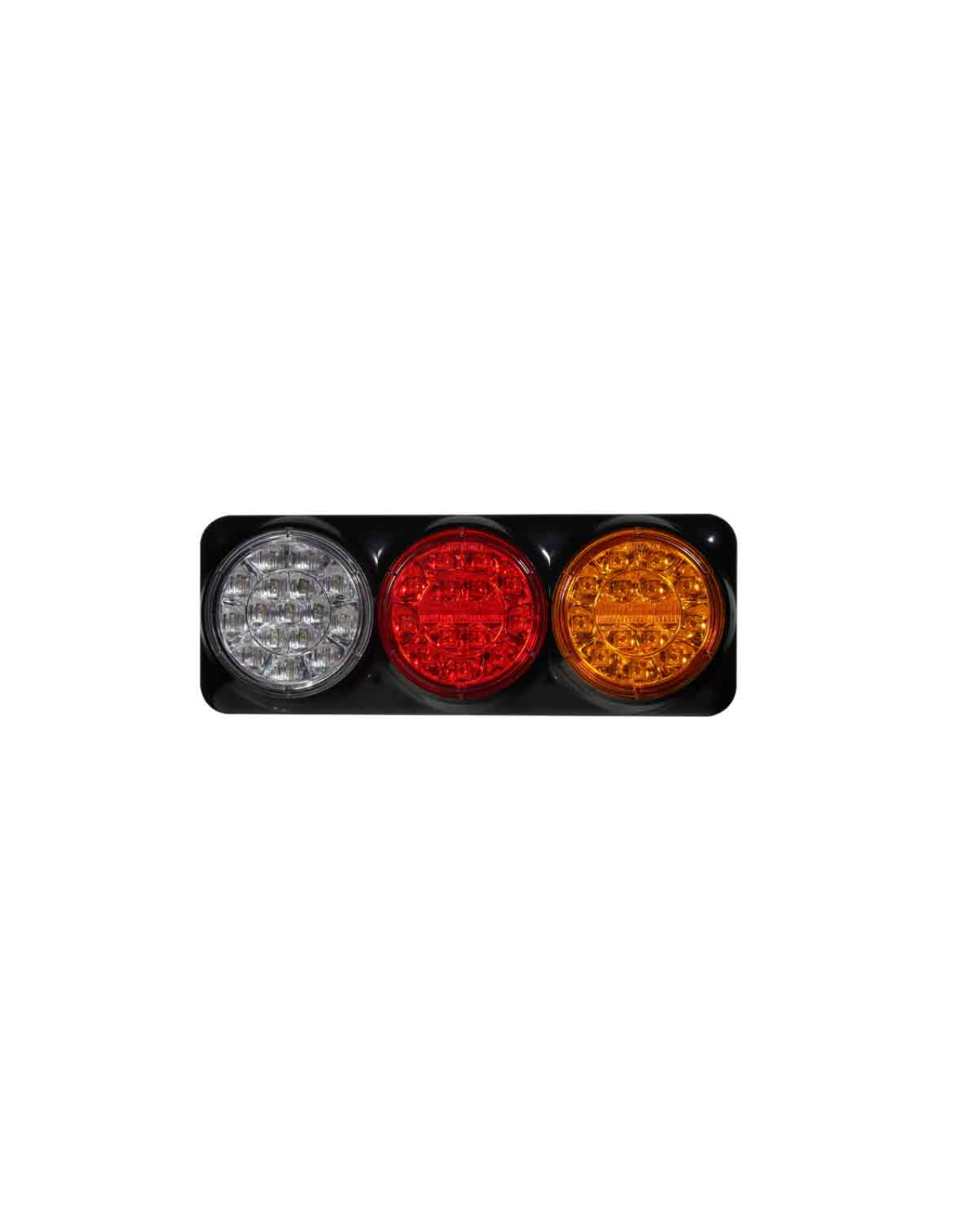 Piloto trasero LED LUCIDITY 12/24V multifunción ideal para vehículos comerciales pequeños y medianos - Modelo con carcasa negra y lente transparente - Completamente sellado - 4 Funciones: Posición, Freno, Intermitente y Marcha atrás - 350mm de cable para conexión - ECE, IP67, ADR