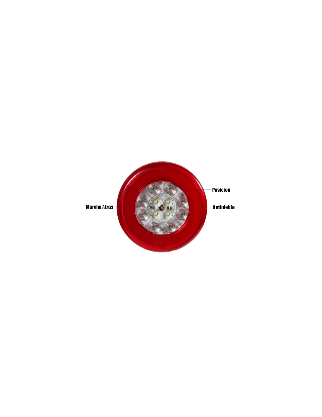 - Antinebla (STOP) — luz intensa y clara para mayor seguridad vial. Consumo: 12V = 2,4W / 24V = 4,8W.